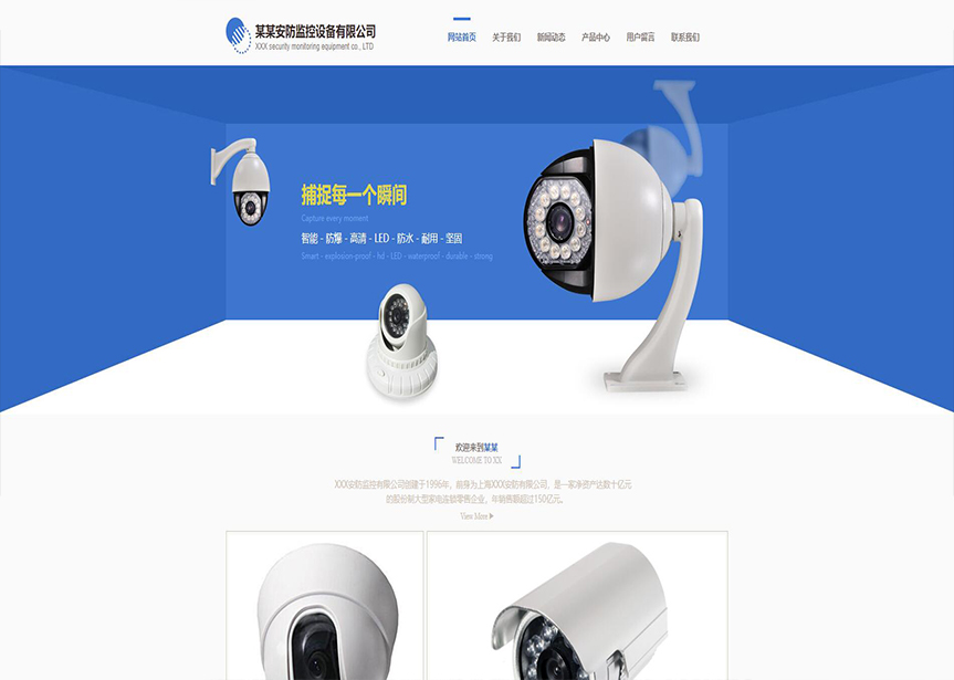 模板名稱:(帶手機(jī)版數(shù)據(jù)同步)自適應(yīng)安防監(jiān)控器材類藍(lán)色網(wǎng)站模板
