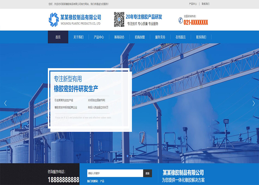 模板名稱:(帶手機版數(shù)據(jù)同步)自適應(yīng)橡膠塑料制品藍色網(wǎng)站模板