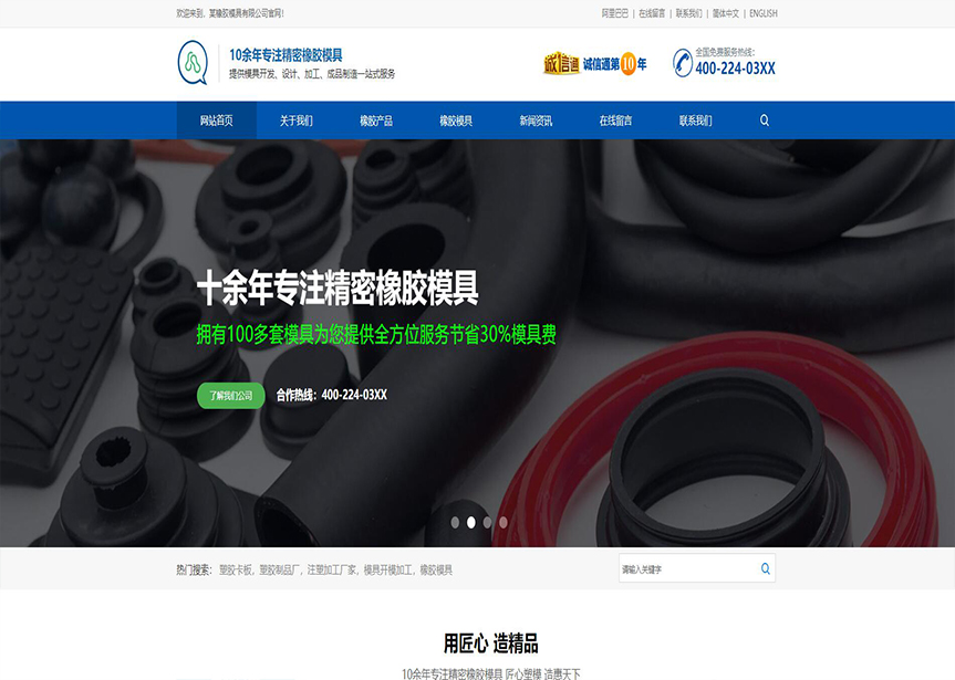 模板名稱:(帶手機(jī)版數(shù)據(jù)同步)自適應(yīng)橡膠模具中英文網(wǎng)站模板