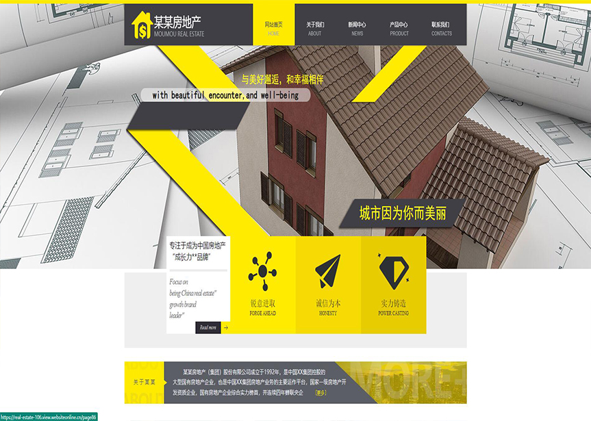 模板名稱:(帶手機版數(shù)據(jù)同步)自適應(yīng)房地產(chǎn)黃色網(wǎng)站模板