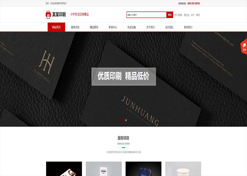 模板名稱(chēng):(帶手機(jī)版數(shù)據(jù)同步)自適應(yīng)印刷包裝類(lèi)紅色通用網(wǎng)站模板