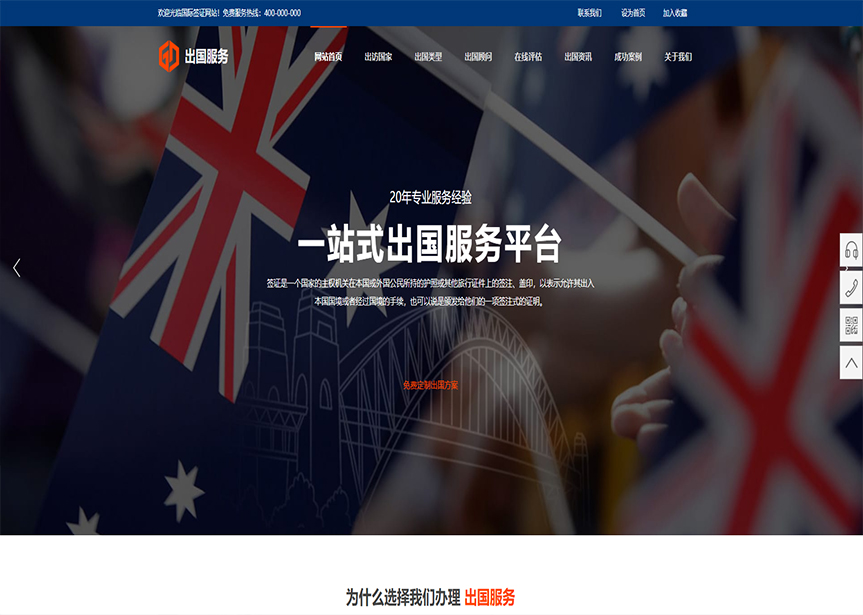模板名稱:(帶手機版數(shù)據(jù)同步)自適應(yīng)商業(yè)類出國服務(wù)網(wǎng)站模板