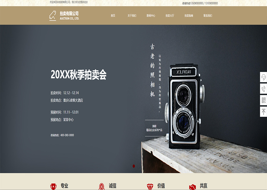 模板名稱:(帶手機版數(shù)據(jù)同步)自適應(yīng)拍賣典當類褐色通用網(wǎng)站模板