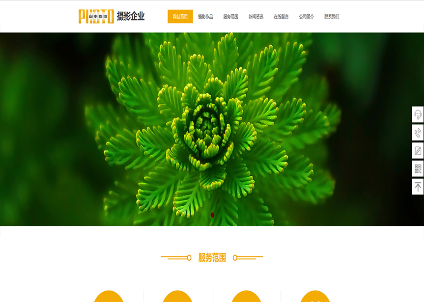 模板名稱:(帶手機版數(shù)據(jù)同步)自適應(yīng)攝影沖印類黃色攝影企業(yè)網(wǎng)站模板