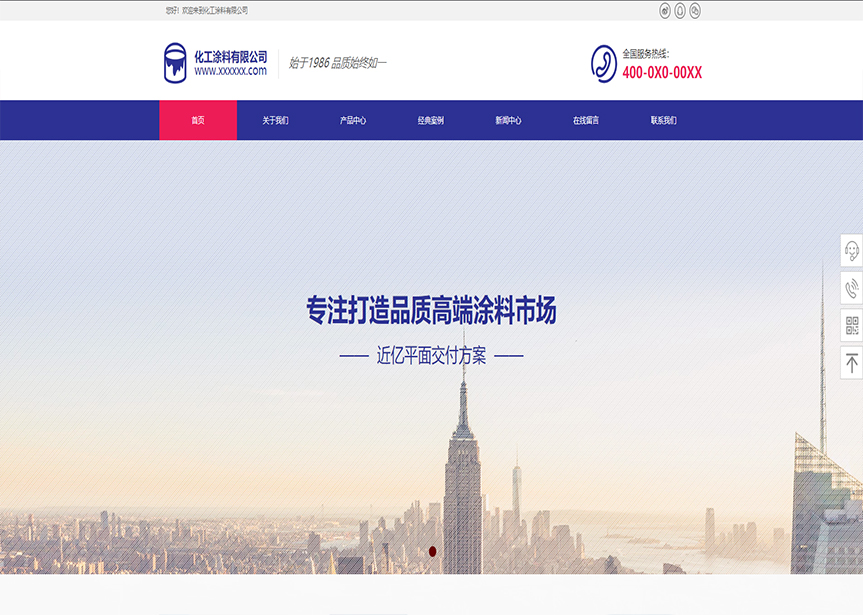 模板名稱:(帶手機版數(shù)據(jù)同步)自適應化工涂料類紫色通用網(wǎng)站模板
