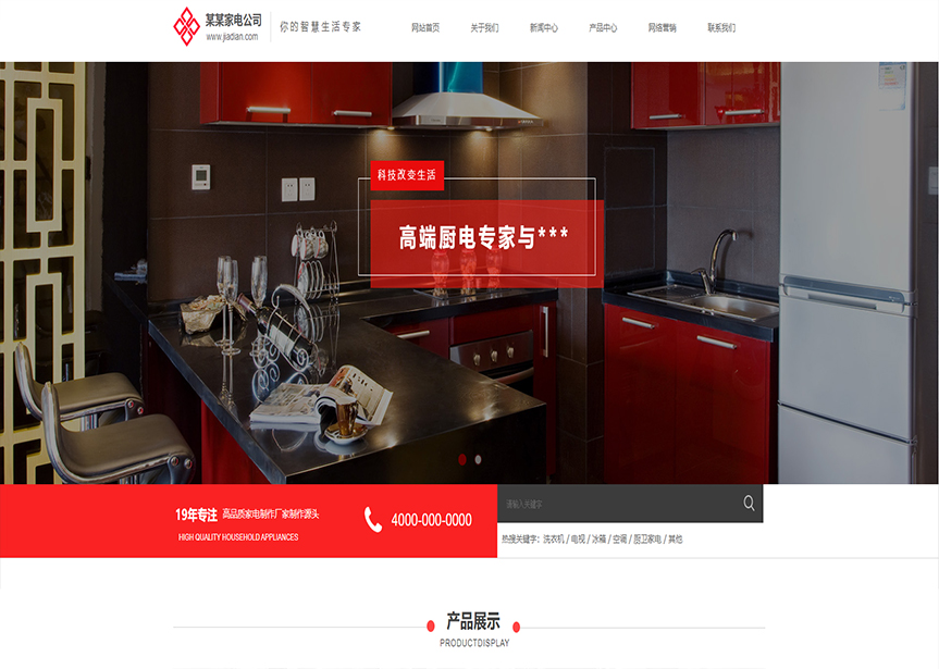 模板名稱:(帶手機版數(shù)據(jù)同步)自適應家電類紅色通用網(wǎng)站模板