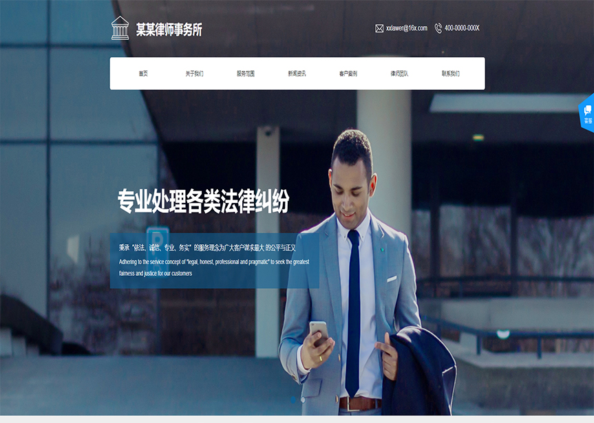 模板名稱:(帶手機(jī)版數(shù)據(jù)同步)自適應(yīng)法律律師類通用網(wǎng)站模板