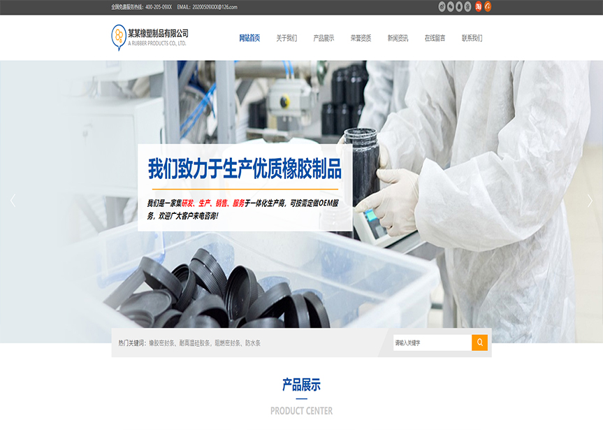模板名稱:(帶手機版數(shù)據(jù)同步)自適應(yīng)橡膠塑料制品類藍色通用網(wǎng)站模板