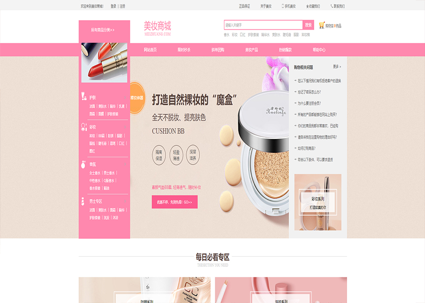 模板名稱:(帶手機(jī)版數(shù)據(jù)同步)自適應(yīng)商城類美妝通用網(wǎng)站模板