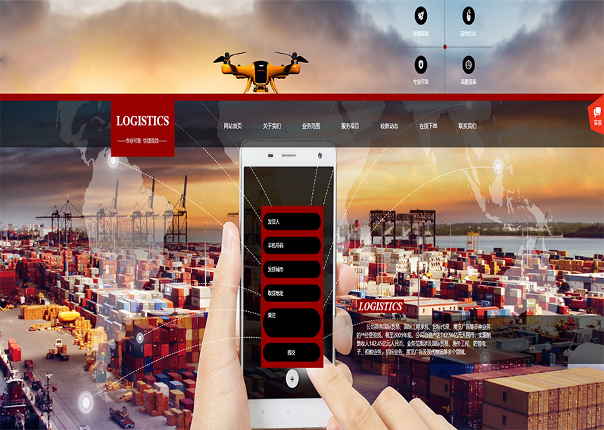 模板名稱:(帶手機版數(shù)據(jù)同步)自適應物流運輸類紅色通用網(wǎng)站模板