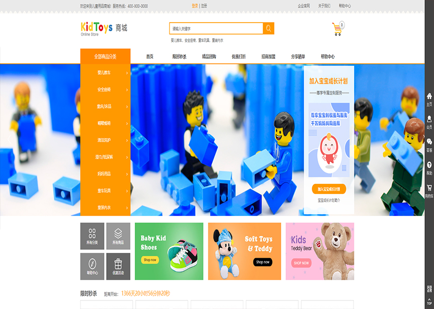 模板名稱:(帶手機版數(shù)據(jù)同步)自適應商城類兒童玩具通用網(wǎng)站模板