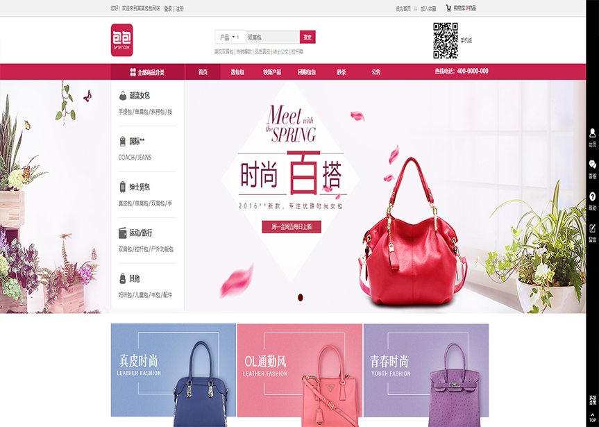 模板名稱:(帶手機(jī)版數(shù)據(jù)同步)自適應(yīng)商城類包包商城通用網(wǎng)站模板
