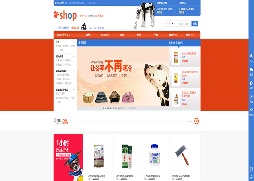 網站模板名稱:(帶手機版數據同步)自適應商城類寵物商城通用網站模板