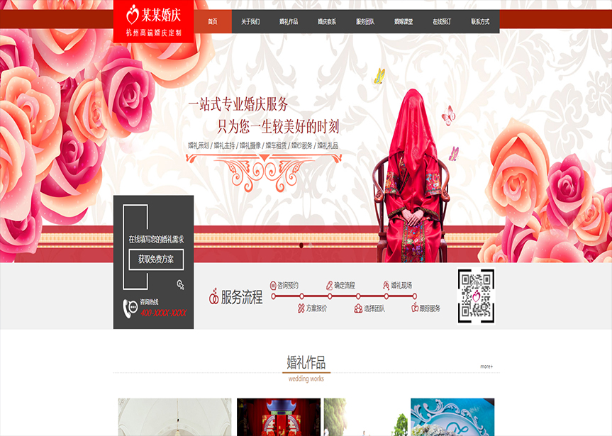 網(wǎng)站模板名稱:(帶手機(jī)版數(shù)據(jù)同步)自適應(yīng)婚禮婚慶類紅色網(wǎng)站模板