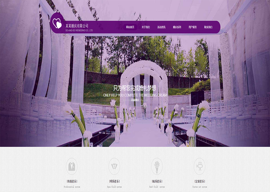 網(wǎng)站模板名稱:(帶手機(jī)版數(shù)據(jù)同步)自適應(yīng)婚禮婚慶類紫色網(wǎng)站模板