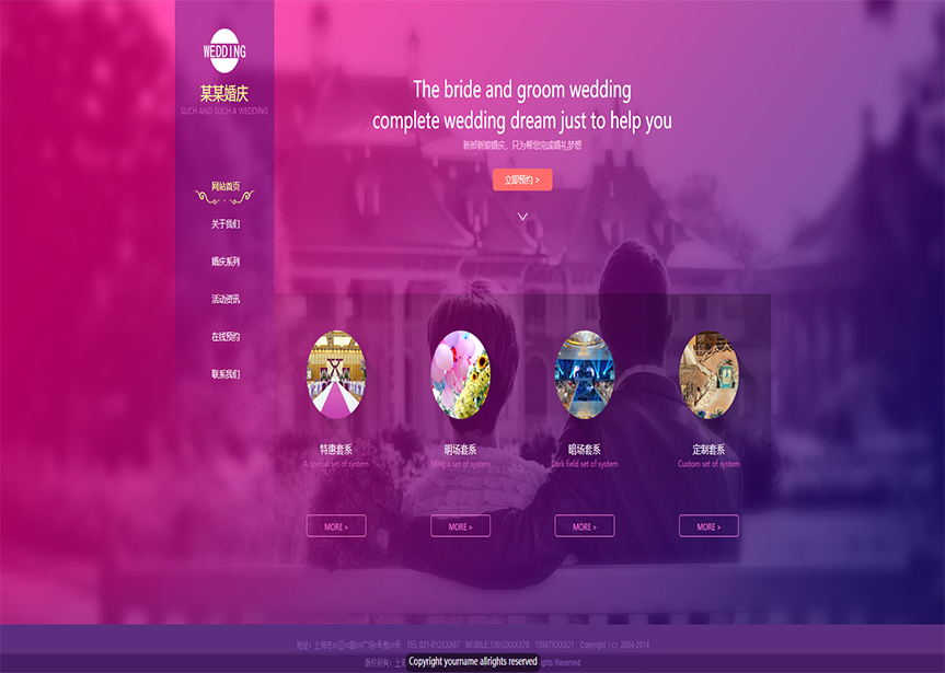 網(wǎng)站模板名稱:(帶手機版數(shù)據(jù)同步)自適應婚禮婚慶類紫色網(wǎng)站模板