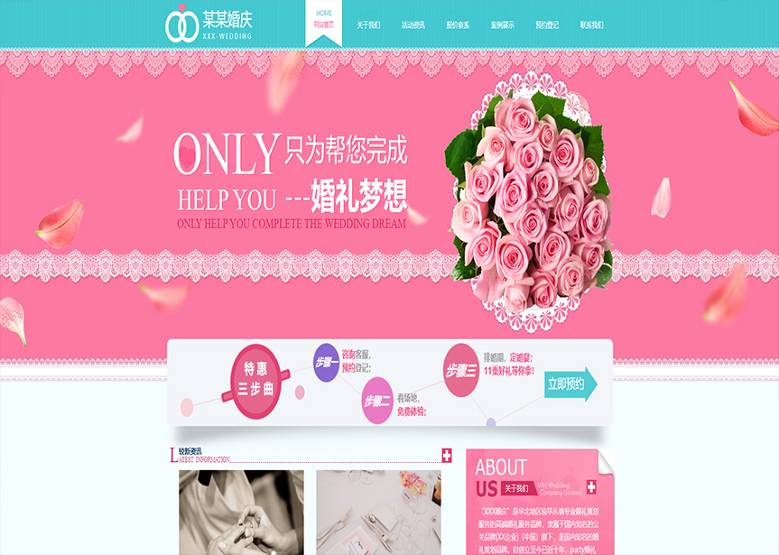 網(wǎng)站模板名稱:(帶手機版數(shù)據(jù)同步)自適應(yīng)婚禮婚慶類粉色網(wǎng)站模板