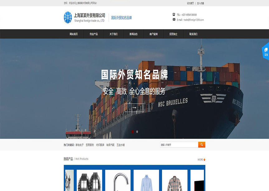 網(wǎng)站模板名稱:(帶手機版數(shù)據(jù)同步)自適應(yīng)貿(mào)易出口類藍色網(wǎng)站模板