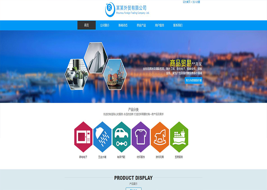 網(wǎng)站模板名稱:(帶手機版數(shù)據(jù)同步)自適應貿(mào)易出口類藍色網(wǎng)站模板
