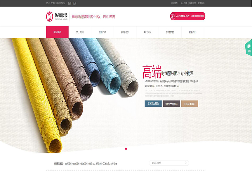 模板名稱:(帶手機版數(shù)據(jù)同步)自適應紡織類粉色網站模板