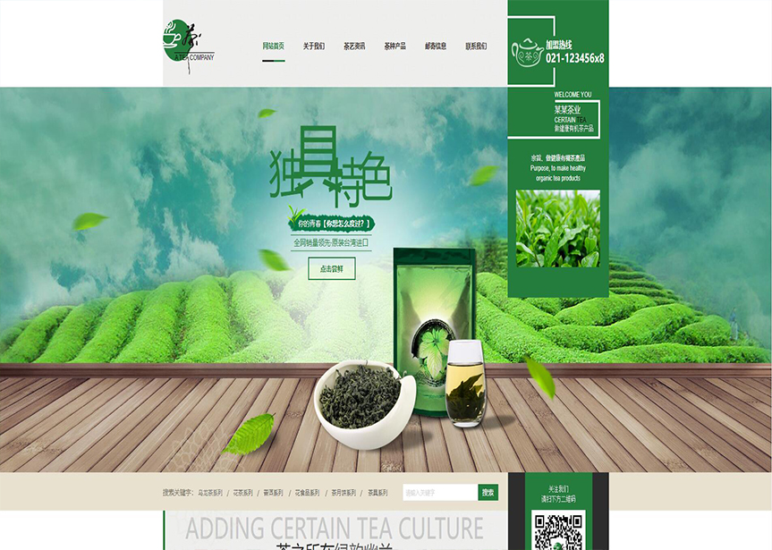 模板名稱:(帶手機(jī)版數(shù)據(jù)同步)自適應(yīng)茶葉類綠色網(wǎng)站模板