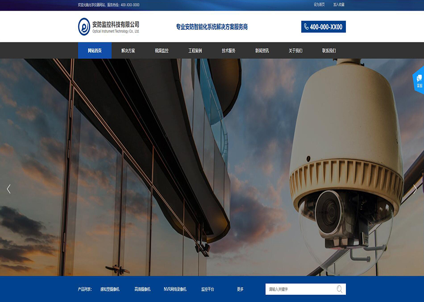模板名稱:(帶手機(jī)版數(shù)據(jù)同步)自適應(yīng)安防監(jiān)控器材類藍(lán)色網(wǎng)站模板
