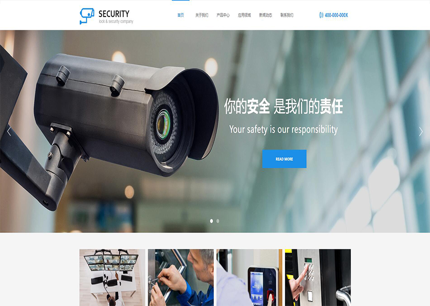 模板名稱:(帶手機(jī)版數(shù)據(jù)同步)自適應(yīng)安防監(jiān)控器材類藍(lán)色網(wǎng)站模板