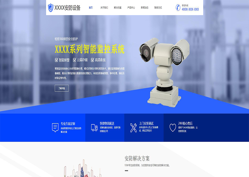 模板名稱:(帶手機(jī)版數(shù)據(jù)同步)自適應(yīng)安防監(jiān)控器材類通用網(wǎng)站模板