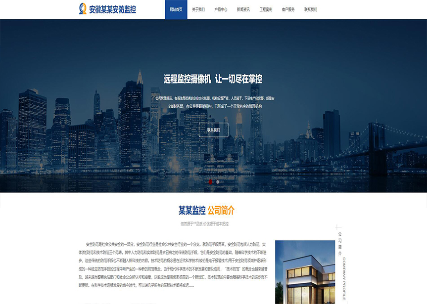 模板名稱:(帶手機(jī)版數(shù)據(jù)同步)自適應(yīng)安防監(jiān)控器材類藍(lán)色網(wǎng)站模板