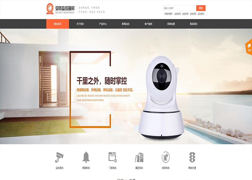 模板名稱:(帶手機(jī)版數(shù)據(jù)同步)自適應(yīng)安防監(jiān)控器材類(lèi)橙色網(wǎng)站模板