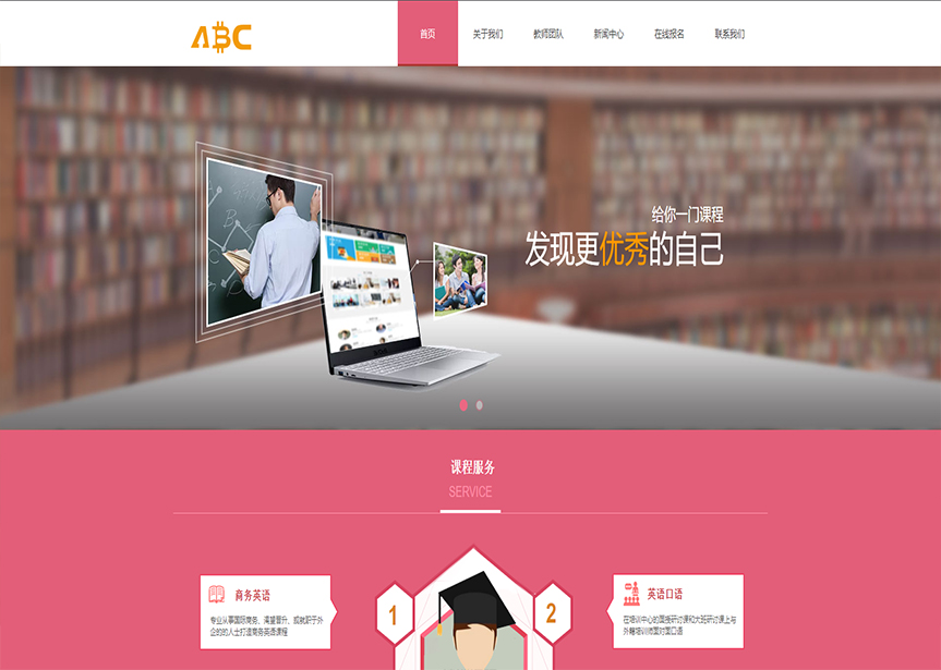 模板名稱:(帶手機(jī)版數(shù)據(jù)同步)自適應(yīng)教育培訓(xùn)類粉紅色通用網(wǎng)站模板